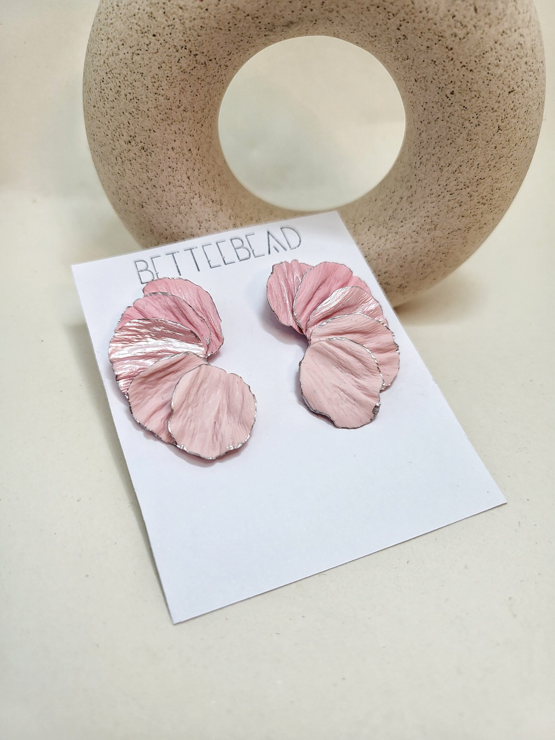 Púderrózsaszín színű fülbevaló, amelyet a virágszirmok erezetének mintája díszít